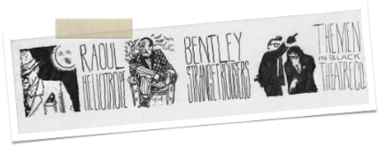 Way back in the late 1990’s I dreamed up the idea for an absurd radio serial based around a loquacious detective / gentleman spy called Bentley Strangetrousers. In my original pilot script the setting was contemporary and Bentley was a lone, outrageously surreal character in a bleak & otherwise conventional world; the only other eccentric was his arch nemesis, the equally deranged Raol Heliotrope. The script did the rounds of radio producers, engendered interest, but was never quite made and so Bentley languished in a drawer for over a decade…
